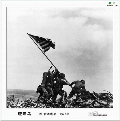 31 二战中,美军士兵在奋战胜利之后在硫磺岛竖起美国国旗