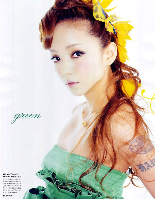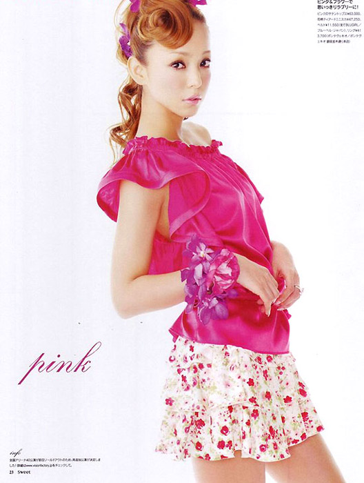 歌手安室奈美惠为日本时尚杂志《Sweet》2月号拍摄的一组照片近日曝光。在这组照片里,安室奈美惠以甜美风格出镜,分别以“绿色”、“蓝色”、“粉红色”为主题示范色彩搭配游戏。