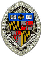 大学的拉丁文校训为Veritas vos liberabit(真理必叫你们得以自由,出自《圣经·约翰福音》8:32)。大学校徽的正中央为橡树枝支撑的马里兰州建立者巴尔的摩领主的家族纹章,其上的书籍和地球象征着艺术和科学研究。霍普金斯大学的首任校长是Daniel Gilman。