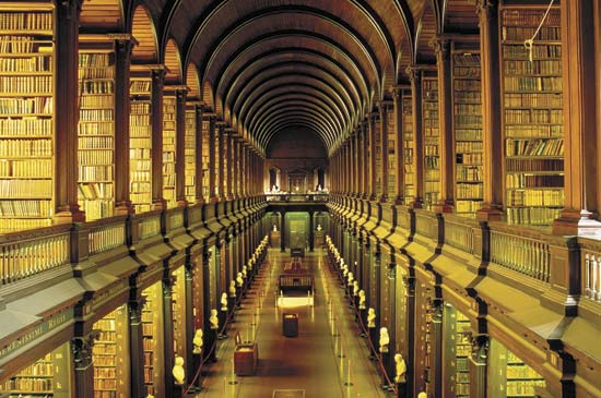 9 圣三一学院,爱尔兰 圣三一学院是爱尔兰首都都柏林最热门的旅游景点之一。单凭其老图书馆,就足以跻身世界最美的大学校园之列。圣三一学院的图书馆是英国女王伊丽莎白一世1592年下令建成的,图书馆内有着桶拱形的天花板和一个65米的长厅,经典藏书都在此完好无损地传承了几个世纪,阅读者们随时可以走进历史中。图书馆还有14座著名作家和哲学家的半身雕像,从1743年开始就矗立在这里。