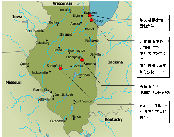美国伊利诺伊州,不仅有位于Evanston的西北大学,位于Champaign的伊利诺伊香槟分校,在Chicago市中心更是囊括了芝加哥大学、伊利诺伊理工学院、伊利诺伊芝加哥分校三所知名学府。
