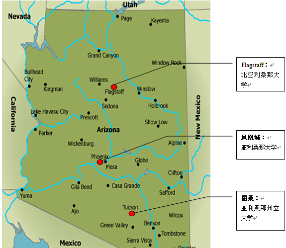 与墨西哥接壤的亚利桑那州拥有三座全球知名的高等学府,分别是位于Flagstaff的北亚利桑那大学,位于Phoenix的亚利桑那大学和位于Tucson的亚利桑那大学立大学。其中亚利桑那大学与麻省理工、卡耐基梅隆大学并成为MIS三巨头,并拥有世界上最优秀的光学研究中心。