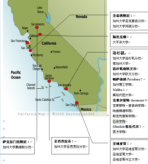 加州是美国各大高校最为集中的一个周,北部的萨格拉门托拥有加州大学大维斯分校,斯托克顿拥有太平洋大学,圣荷西拥有加州大学圣克鲁兹分校和河滨分校;南部圣芭芭拉拥有加州大学圣芭芭拉分校,圣地亚哥拥有加州大学圣地亚哥分校、圣地亚哥大学和圣地亚哥州立大学。
