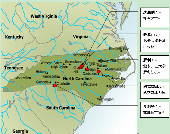 美国北卡罗来纳州,拥有北卡大学教堂山分校、比卡州立大学罗利分校,威克森林大学、戴维森学院和杜克大学。其中北卡大学和杜克大学不仅是学术知名的世界名校,两个学校的篮球队也同样有名,如果你也喜欢篮球,一定要分清楚浅色的“北卡蓝”和深色的“杜克蓝”。