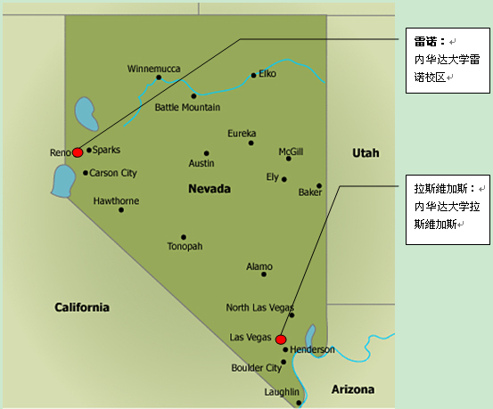 拉斯维加斯作为美国内华达州最著名的城市,不仅有世界上最华丽的酒店,也拥有全美知名学府——内华达大学拉斯维加斯分校,该校的雷诺分校位于北部与加州相邻的Reno。雷诺分校成立于1874年,比成立于1957年的拉斯维加斯分校早了近一个世纪。