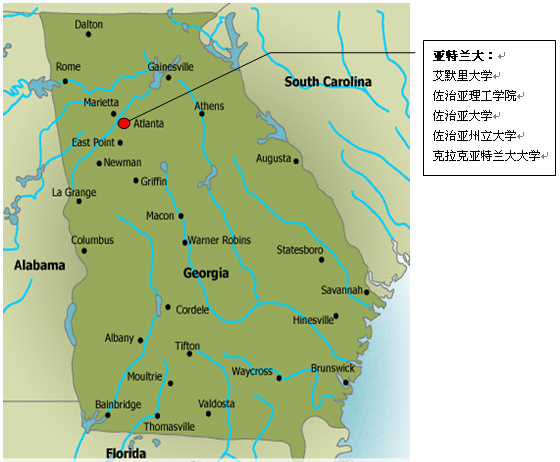 美国佐治亚州首府亚特兰大是一个盛产高校的城市,在这里有南哈佛之称的艾默里大学,佐治亚理工学院,全美第一所州政府出资赞助的佐治亚大学,佐治亚州立大学,克拉克亚特兰大大学。