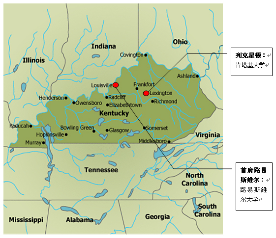 创办于1865年的肯塔基大学坐落于Lexington,烟草种植和良种马饲养是这座小城市的经济支柱;路易斯维尔大学位于首府Louisville,这里是全美主要的医疗保健中心之一。