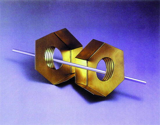 第十一幅:疯狂的螺帽:你知道直钢棒是怎样神奇地穿过这两个看似互成直角的螺帽孔的吗?