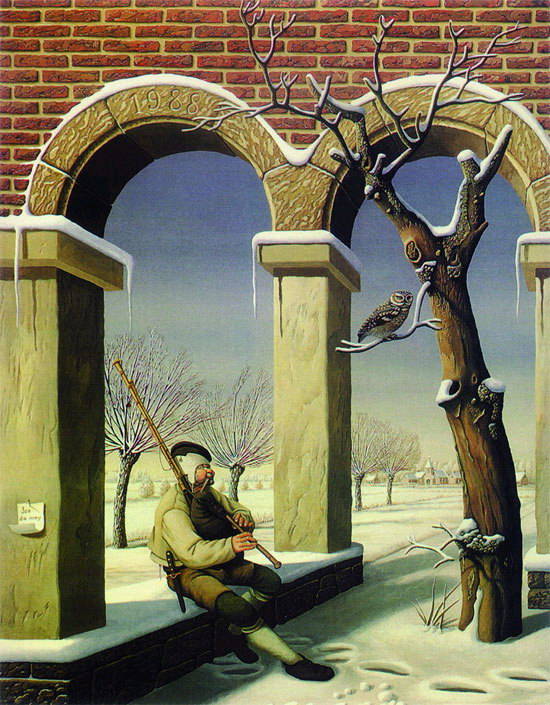 第十二幅:佛兰德斯冬日的忧伤曲调:佛兰德斯艺术家约瑟·德·梅抓住了这个不可思议的冬日场景。试想左边的柱子怎么会靠前呢?