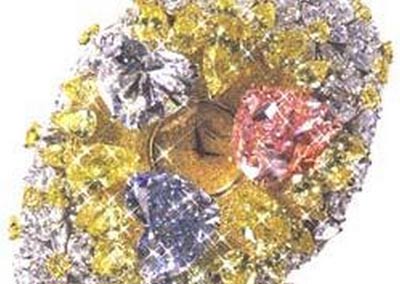 这块令人眼花缭乱的手表是一件真正的艺术品!肖邦公司在这块手表上镶嵌了3颗心形钻石,一颗15克拉的粉钻,一颗12克拉的蓝钻和一颗11克拉的白钻。除此之外,还有163克拉的白钻和黄钻。这块手表上总共镶嵌了201克拉的钻石,售价高达2500万美元!
