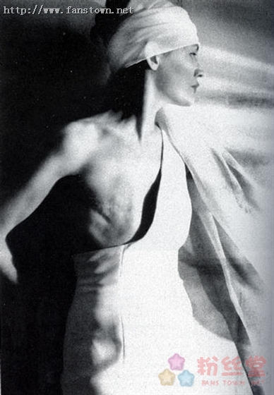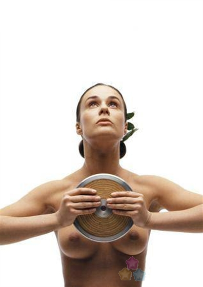 此照为黑白照,侧重于用光影来突出显示女性挺拔的乳房和翘臀,裁去半个面孔,更营造出一种神秘感。