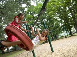 Sasha (l) and Malia Obama at play in New Hampshire in 2007. |