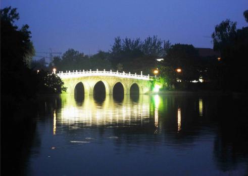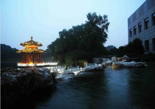 钓鱼台国宾馆座落在北京西郊古钓鱼台风景区。古钓鱼台昔日为帝王游息的行宫,是北京著名的园林之一,迄今已有八百多年的历史。金代(公元1115—1234年)章宗皇帝曾在这里建台垂钓,故后是有“皇帝的钓鱼台”之称。元代(公元1271—1368年)初年,宰相廉希宪在这里修建别墅“万柳堂”,成为盛极一时的游览胜地。明代永乐之后,这里是达官贵戚的别墅,许多文人学士游宴赋诗于此。清代乾隆皇帝爱其风光旖旎,定为行宫,营建了养源斋、清露堂、潇碧轩、澄漪亭、望海楼,并亲笔题诗立匾。