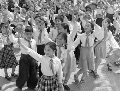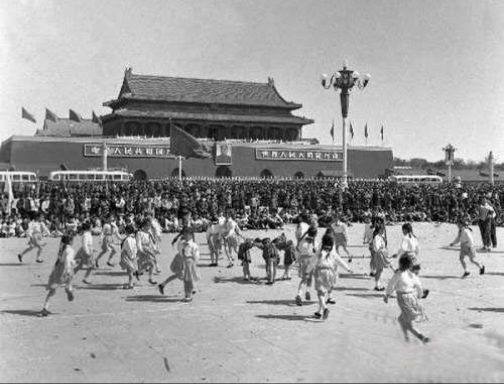 1963年5月1日,首都少年们在天安门广场上表演跳猴皮筋舞
