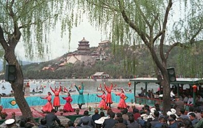 1974年5月1日,北京人民在颐和园举行盛大游园联欢,庆祝“五一”国际劳动节