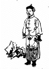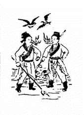 "头有发,衣怕白" 形容的是太平军的服饰,"太平时,王杀王"直接提到了太平天国的名号,以及最后互相残杀的命运."太平又见血花飞",太平即是指太平年景的终结,也是暗示了太平天国的名号,"五色章成里外衣" 形容太平军的服饰."洪水滔天苗不秀" 暗示了洪秀全的名字," 中原曾见梦全非" 指的是太平天国一度占了中原的大好河山,但终是一梦.再看图,描绘的是洪水滔天,芦苇边的几具骷髅,即暗示了洪秀全的名字,又暗示了太平天国的悲惨命运.