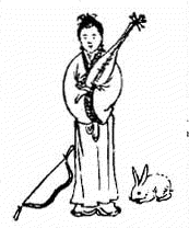 我们来 分析一下吧.先看图,女的自然是指江青,手里的琵琶指的是王姓的一个人(王洪文),地上的弓指的是张姓的一个人(张春乔),剩下的兔子指的是姚文元(兔子 能跳,兔在右,女在左,跳字左侧换成女字,起不是姚).再来看诗.“美人自西来,天朝中日渐安”,江青是随毛从陕西来北京的,自是西来,至于美不美,老毛 心理最清楚.进了北京后,先开始她还是比较安分的.“长弓在地”,弓指军权,她没能握住,(又一解,有个姓张的人辅助她)“危而不危”,几乎危及到了江山 社稷,但最终化险为夷.“西方女子琵琶仙”,江青以前曾当过歌女.“皎皎衣裳色更鲜”,暗指青字(皎,白也,比白更鲜,青也).“此时浑迹居朝市”,在政 治局瞎搅和,“闹乱君臣百万般”,给毛主席,周总理还有1大批给她打倒的干部带来多少麻烦和痛苦.