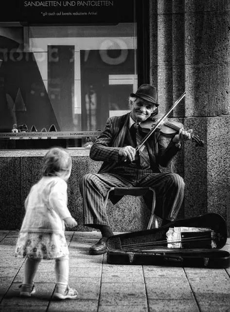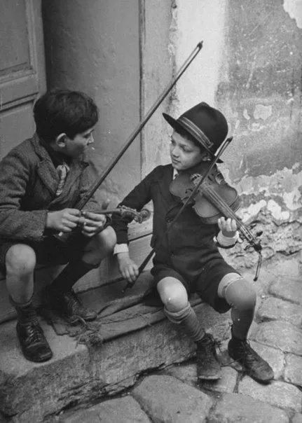 切磋琴技:街头拉小提琴的吉普赛儿童(年份未明)