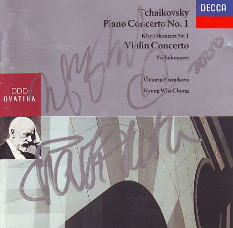 p09.柴柯夫斯基:小提琴协奏曲(蒙特利尔交响乐团、迪图瓦指挥)这是我最喜爱的老柴d大调小提琴协奏曲最好版本之一,封面是郑京和与迪图瓦的签名