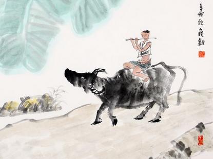 作品显示段,采用了传统的民间舞蹈风格,节奏、旋律较为欢快,把一个骑在牛背上、悠闲地吹着笛子、天真无邪的牧童形象跃然纸上,使人眼前不禁浮现出画家李可染的《牧童短笛图》,仿佛走进一个山清水秀的 大自然,领略大自然的神奇与美妙。