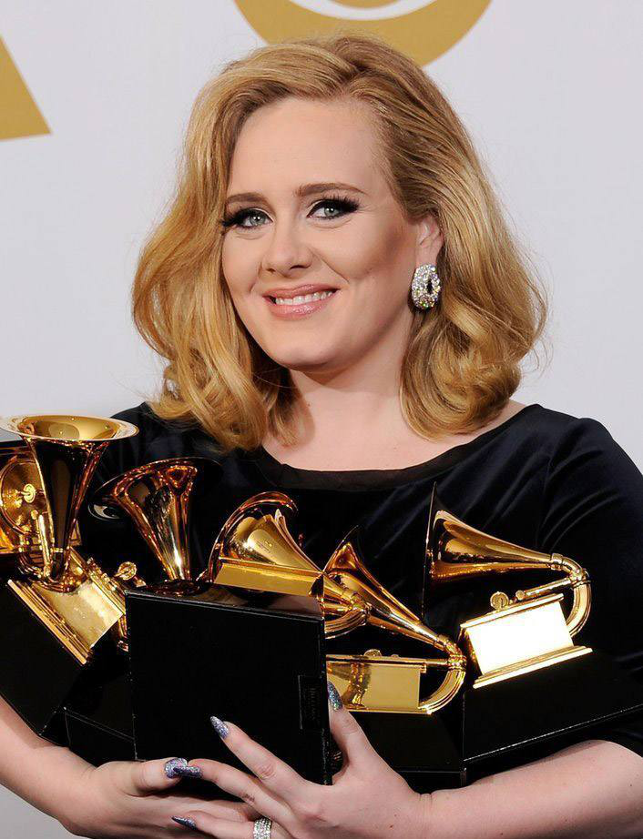 阿黛尔出道至今累计获得:1座全球奖,1座奥斯卡奖,4座全美音乐奖,8座全英音乐奖,15座格莱美奖,18座告示牌音乐奖,单曲与专辑的累积销售超过一亿张。