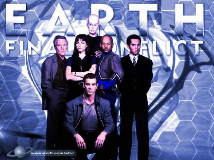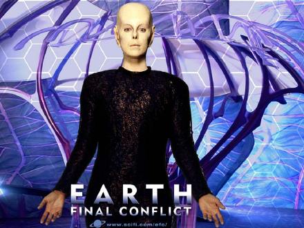 美国科幻电视系列片“Earth:FinalConflict”《泰星来客》,该剧于1998年5月在美国播完,由美国最著名的科幻作家吉恩兰登伯利编剧。该剧亦为其封刀之作。该剧讲述的是泰星人来到地球,企图改变人类的未来。由于泰星人与人类彼此之间的不理解,从而引发了一系列的矛盾冲突。
