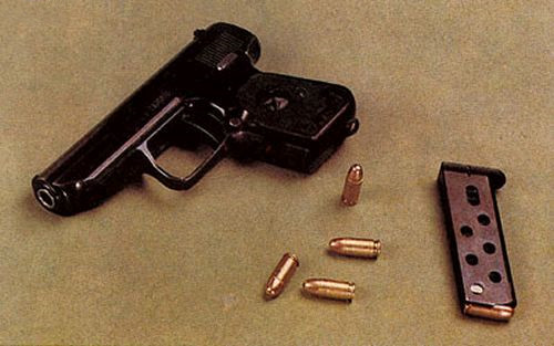 该枪是我国仿制前苏联马卡洛夫手枪的产品,是供指挥员和公安保卫人员在近距离上使用的自卫武器。1959年初仿制,1960年停产,迄今尚未正式定型,在部队装备时间最短