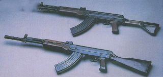 (2)全枪短、质量轻(步枪3.25千克,机枪3.95千克),机动性好,优于国外同类武器。