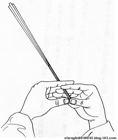 1用两手的中指和食指夹着香杆,大姆指顶着香的尾部;