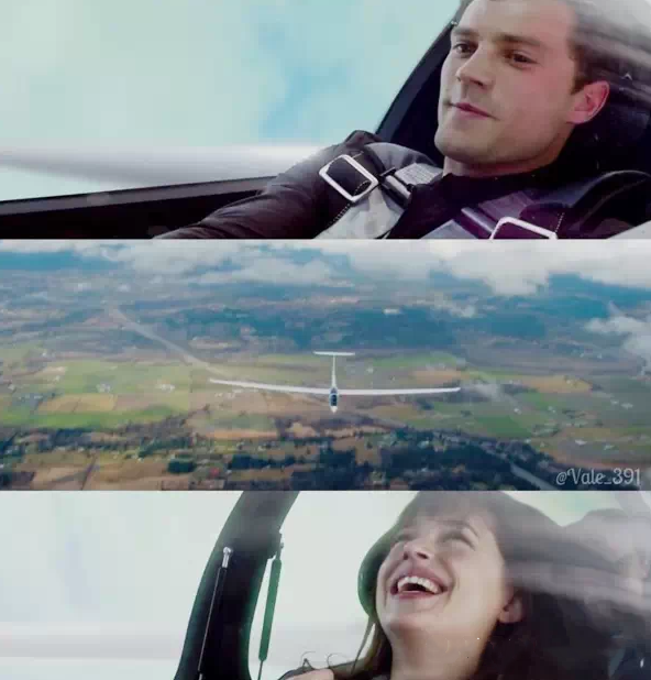 这段是影片最美的画面,当Christian Grey首次对外介绍Anna为自己的Girlfriend,本来就开心的走不动路,正好Grey带你在3000英尺高空玩滑翔机,这在美国可都是富豪或者好莱坞大咖们钟爱的“玩具”。