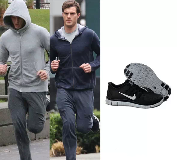 Grey非常热爱锻炼身体,慢跑是其中比较重要的项目,片中两次慢跑他都穿着经典耐克球鞋,影片刚开始的灰色帽衫来自Wings + Horns(195美元),内搭James Perse毛衣(135美元)(见左图)。
