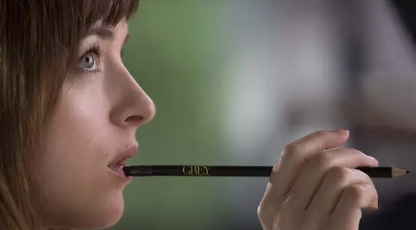 Anna在初见Grey的时候摔了个狗吃屎,笔都找不到了,Grey给Anna的正是桌上摆放整齐的Grey Enterprises品牌冠名的22¢金箔铅笔(也是醉了啊~)