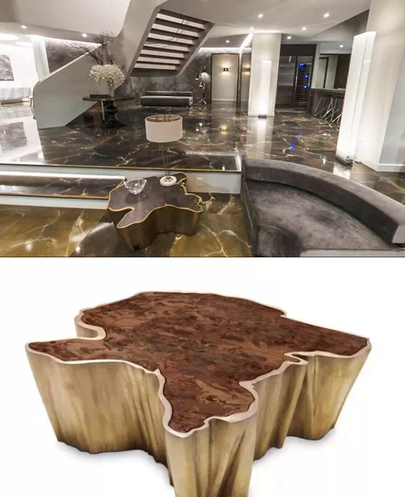 顶级家具奢侈品牌Brabbu Design Forces出品的黄铜边红木桌