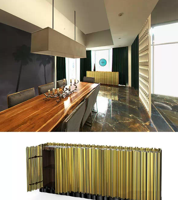 葡萄牙奢华家具制造商Boca Do Lobo设计的Symphony品牌桌边柜,95条黄铜管互相拼合形成