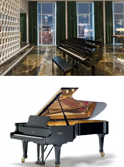 它是意大利名琴Fazioli旗下F278型号三角钢琴,耗时三年手工制造。它所采用的以红云杉木与举世闻名的古董小提琴史特拉蒂瓦里(Stradivarius)所用杉木产自同一个森林,某些部位镶有18K金。这架琴的造价高达26.8999万美元。