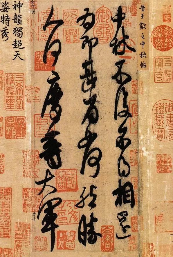 《书断》中说:“字之体势,一笔而成,偶有不连,而脉不断,及其连者,气候通其隔行”。《中秋帖》书法纵逸豪放,应是王献之创造的新体。此贴体现了晋人书法的最高成就,体现了晋人自由潇洒的风姿,不滞于物,雅逸超然的时代风尚。