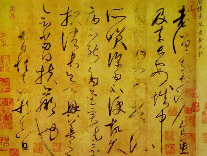 史载怀素性疏放,不拘细行。作为僧人在《食鱼帖》中却大谈食鱼吃肉,表现了蔑视封建世俗和宗教戒律的豪放性格。这一点,与其书法所体现的奔放不羁的艺术个性是相通的。