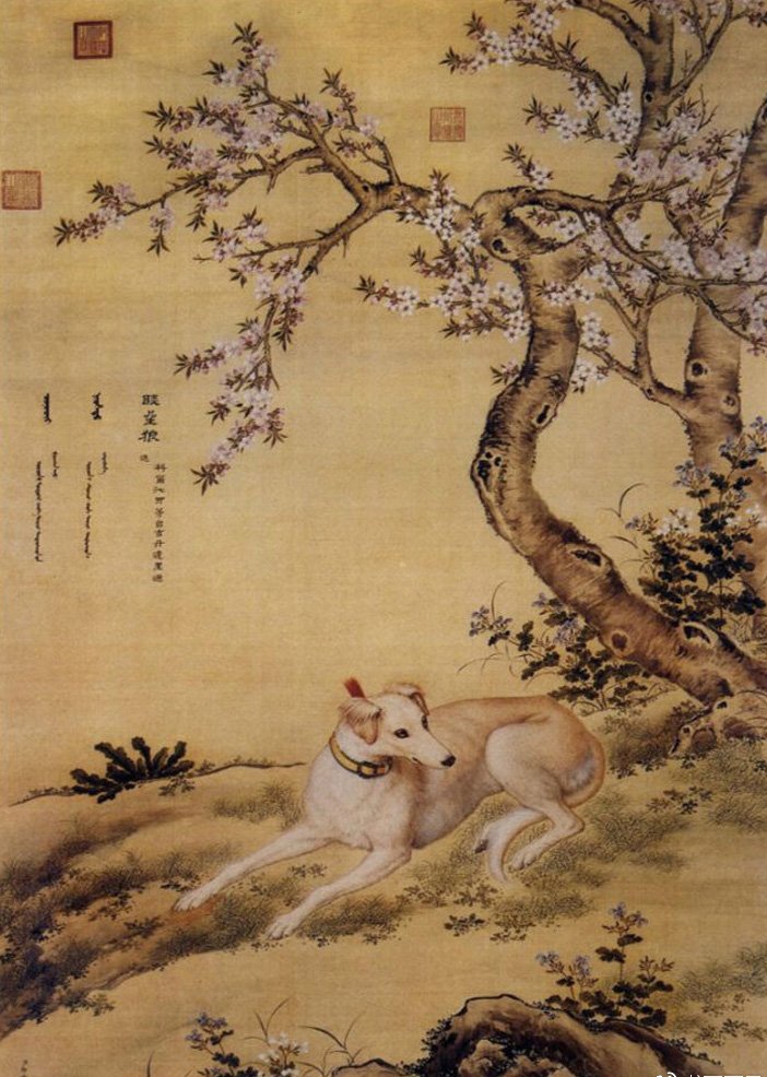 郎世甯擅長人物、肖像、花卉、鳥獸以及曆史題材的繪畫,以中西畫法並用而獨具一格。清代的《歐缽羅室書畫過目考》中記載:“郎世甯,供奉內廷祗侯,畫馬兼工人物屋宇,多從西法。張抑山處士藏有小墨馬尺幅,裝于鏡屏,爲奉敕畫,聞歸延樹南尚書;又見有五貓相戲大幀,落花滿地,嫩草圍石,神趣宛真,所寫之貌蓋西種也,亦奉敕畫。”
