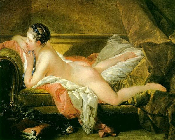 这幅画又称《躺在沙发上的奥达丽斯克》,是画家布歇在18世纪下半叶洛可可形式最高峰時期的作品。裸露的年轻女性有着粉红色泽的肉体,以一种具有挑逗性的姿势俯趴在丝绒沙发上,这幅作品被视为情色艺术的典范,而画中女主角本人在作为布榭的模特儿两年之后(1751-1752),因画作送给当时的法王路易十五而于1753年成为路易十五的情妇。