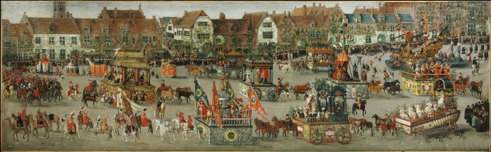 佛兰德画家Denis van Alsloot (1570–1626)1616年的作品《1615年5月31日布鲁塞尔欧梅岗巡游》。布鲁塞尔欧梅岗巡游的传统保留至今。英国维多利亚和阿尔伯特博物馆收藏。