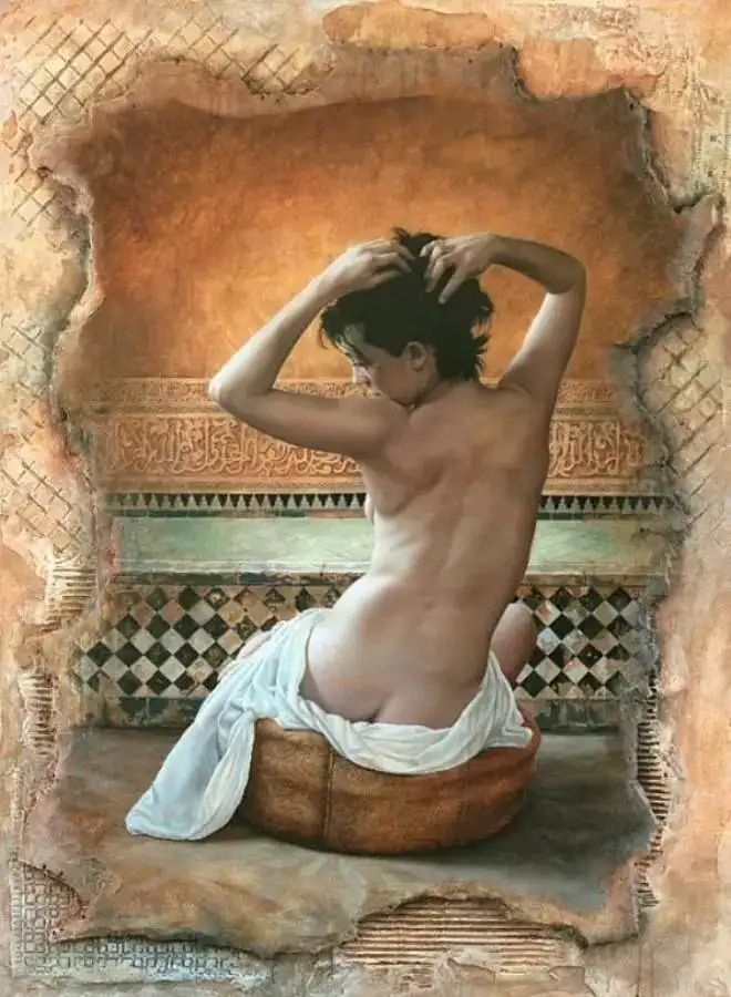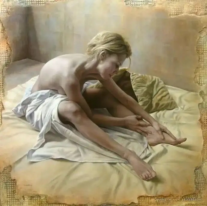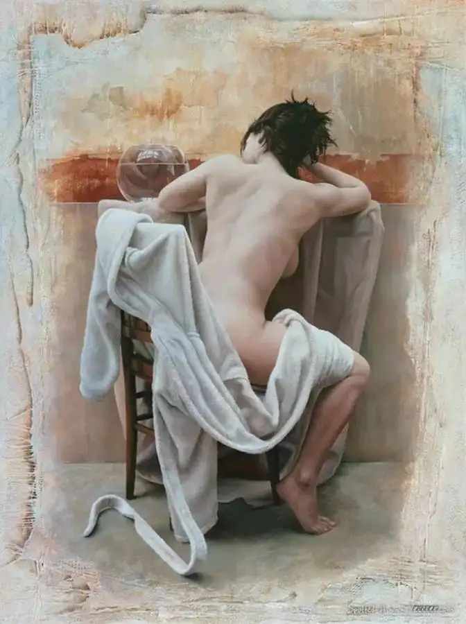 Pascal Choveby,法国艺术家,出生于1968年。是世界上最独特的当代艺术家之一。Pascal Choveby凭借扎实的素描功底和写实主义的艺术主张,创作了不少深受欢迎的油画作品。他的慵懒情调系列人体油画,精致入微,清淡高雅,充满活力和轻松愉快的性情。画面人物安静寂寥,看似慵懒孤独,实却具有动人心弦的张力,给我们不同凡响的视觉体验,反映了画家娴熟的绘画语言和艺术表现力。