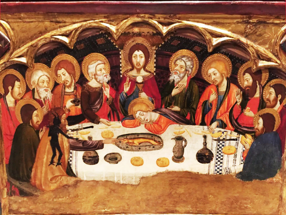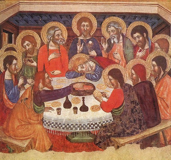 乌梅·塞拉《最后的晚餐》(1400年,木板蛋彩画,墨西拿国立艺术博物馆)