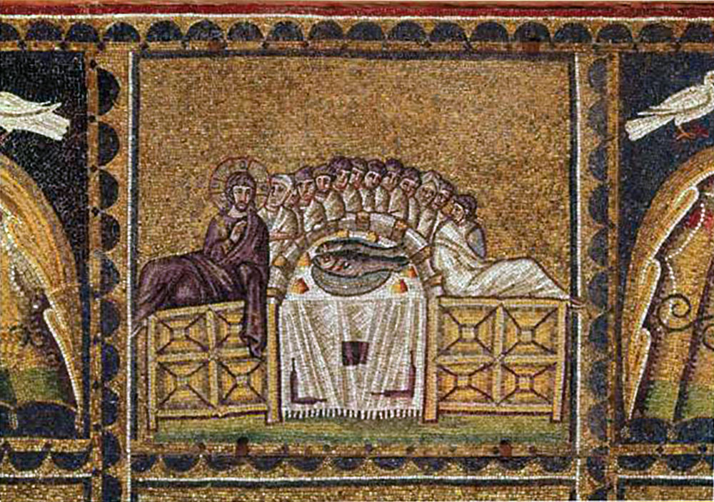 最后的晚餐》(6世纪初,镶嵌画,新圣阿波利纳莱圣殿,拉文纳)