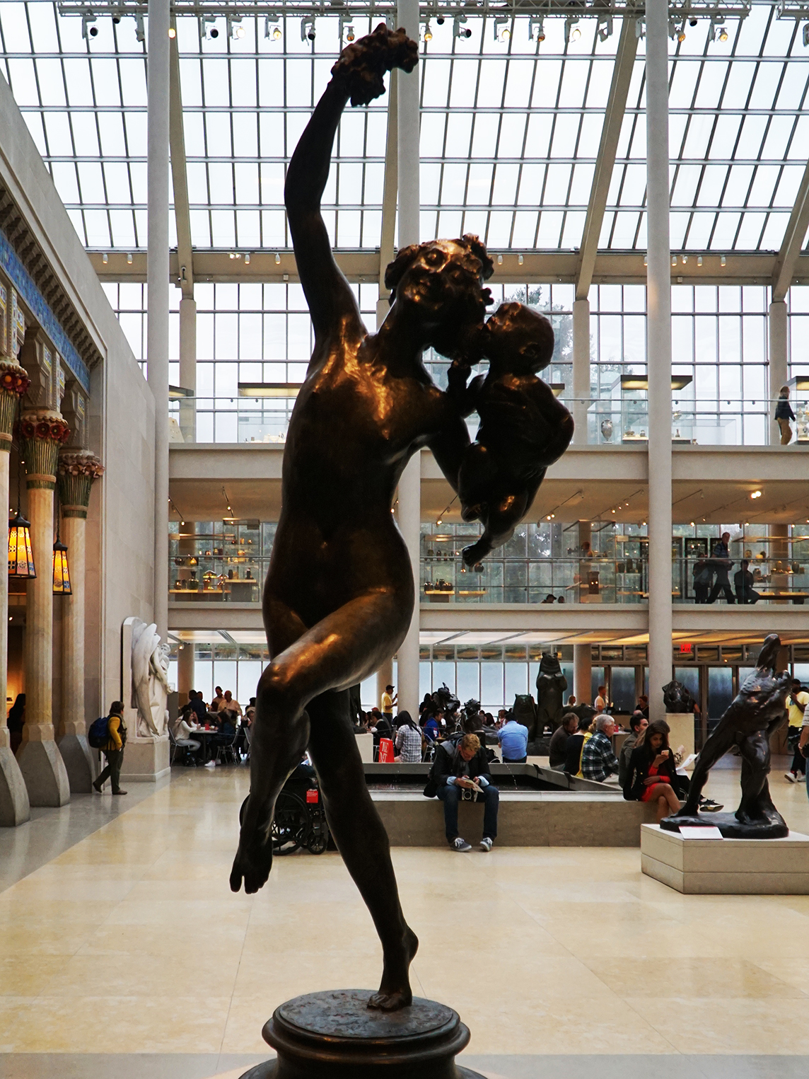 这尊雕像《女祭司和婴儿》,年轻的妈妈跳起来,右手举着一串葡萄,左臂环抱着婴儿。