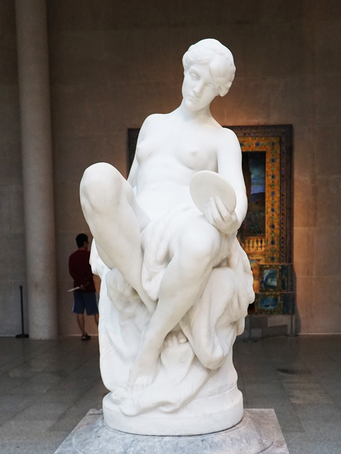 《记忆》(Memory),作者弗伦奇(Daniel Chester French)。《记忆》有两张作品是1909年的作品:右手持镜。本图《记忆》是1919年的作品:左手持镜。原作是一个青铜雕塑,设计于1886-1887年,设计者弗伦奇(Daniel Chester French)是美国作品最多的雕塑家之一。这位“记忆”女郎的手中拿着一个圆形的镜子,“通过这个镜子,她可以看到过去的一切”。