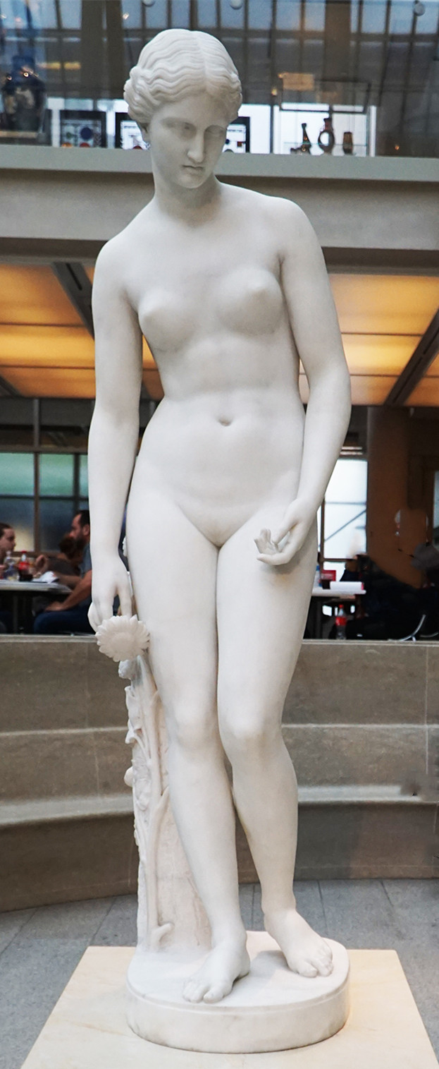 大理石雕刻《克吕提厄》是美国威廉·亨利·莱因哈特( 1825-1874)的作品。 克吕提厄是太阳神赫利俄斯的情人,但后来赫利俄斯移情别恋,又爱上波斯公主琉科托厄。妒火中烧的克吕提厄向波斯王俄耳卡摩斯告发了琉科托厄与赫利俄斯的关系。俄耳卡摩斯下令将不贞的女儿活埋。赫利俄斯得知此事后,彻底断绝了与克吕提厄的来往。痴情的克吕提厄一连九天不吃不喝,凝望着赫利俄斯驾驶太阳车东升西落,日渐憔悴,最终化为一株向日葵。