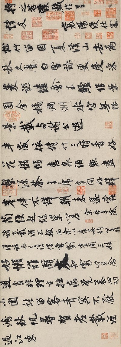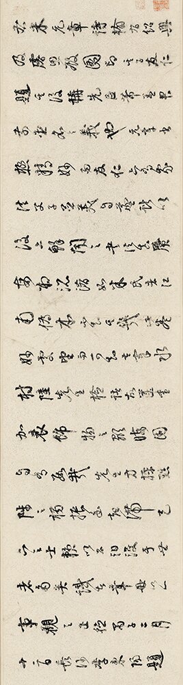 注:此卷原貯長春僞滿宮,後散出宮外,紅字全缺或少缺。今據未損照片本依米帖缺字摹出。