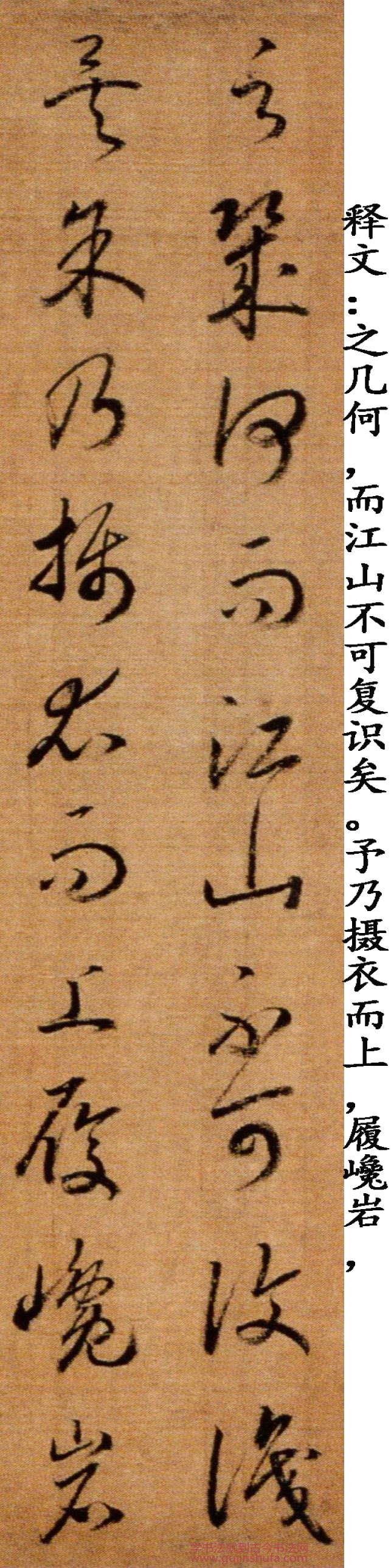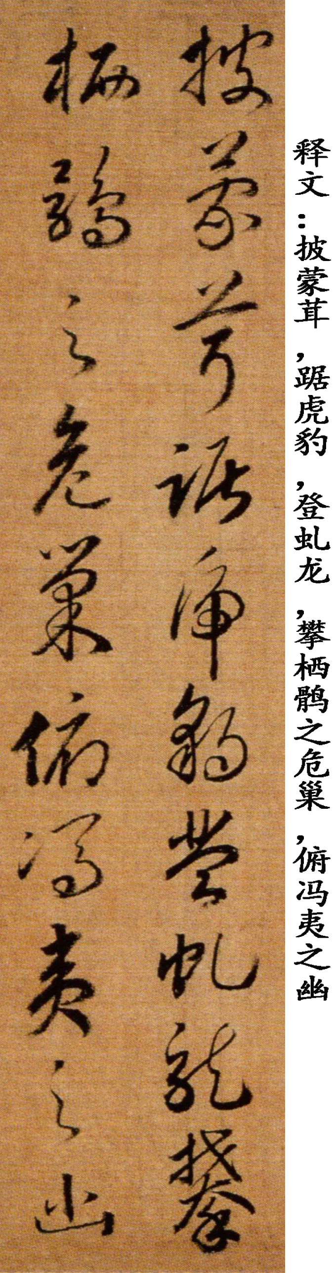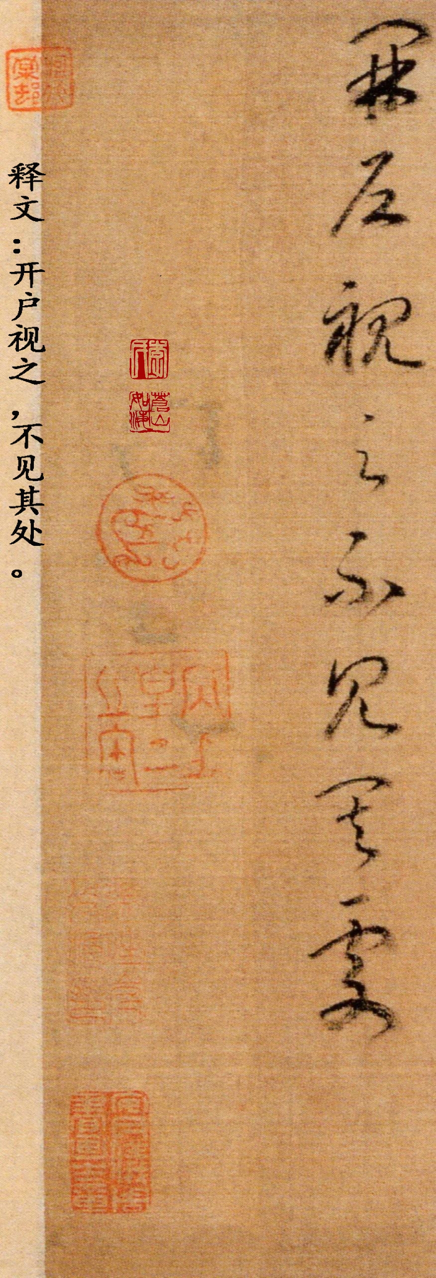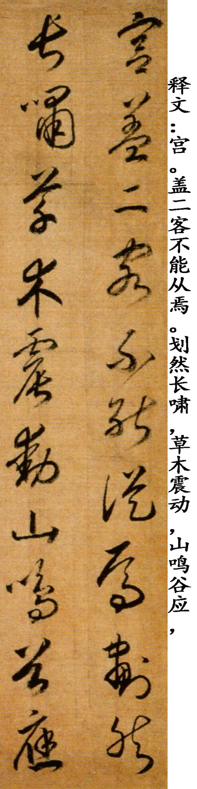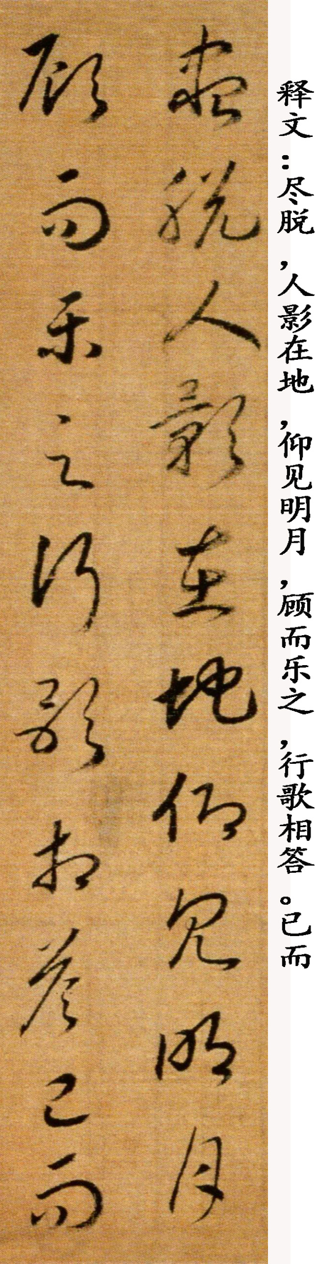 赵构《草书后赤壁赋卷》,绢本,纵29.5厘米,横143厘米(含画)。清宫旧藏。《后赤壁赋卷》同马和之画《后赤壁赋图》同装,笔法精熟,笔画稍显瘦峻,可见锋梭筋骨,功办极深。该段后接另纸无款篆书苏轼《后赤壁赋》全篇。鉴藏印记:梁清标、安仪周等藏印。历代著录:《南宋画院录》、《大观录》、《墨缘汇观续录》、《石渠宝笈续编》。