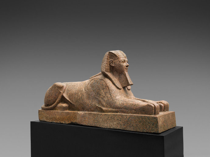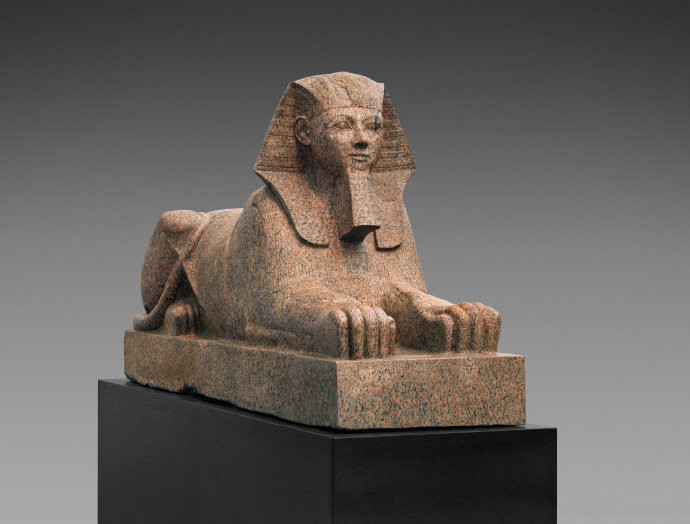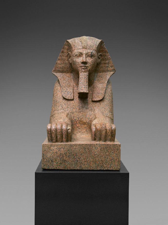 我们应该都很熟悉埃及吉萨狮身人面像的形象。众所周知,吉萨狮身人面像的面部曾经遭到“毁容”,鼻子缺失,同时也缺少了胡须部分,那么,古埃及完整的“狮身人面像”大概长什么样呢?美国大都会博物馆收藏的哈特谢普苏特狮身人面像会告诉你答案。18王朝的哈特谢普苏特(约公元前1479年-约公元前1458年在位)是埃及历史上著名的女法老,但她去世后继位的图特摩斯三世为了消除前者统治的痕迹彰显自己的权威,在全国范围下令毁掉她的铭文和雕像。因此这件以哈特谢普苏特为原型的狮身人面像是1920年代大都会博物馆的考古队在埃及底比斯塞内姆特石场发现的,发现时已经被人为砸成了碎块,运回美国后经过修复组装才有了今天的摸样。