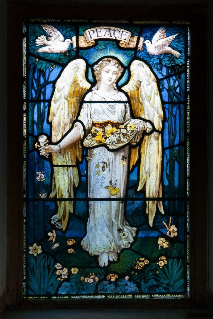 威廉·莫里斯公司1900年左右设计制造的花窗玻璃《和平天使》。该公司由英国著名设计师、诗人威廉·莫里斯创立。PS,莫里斯属于英国左翼知识分子,曾与爱琳娜·马克思一起创立社会主义同盟。